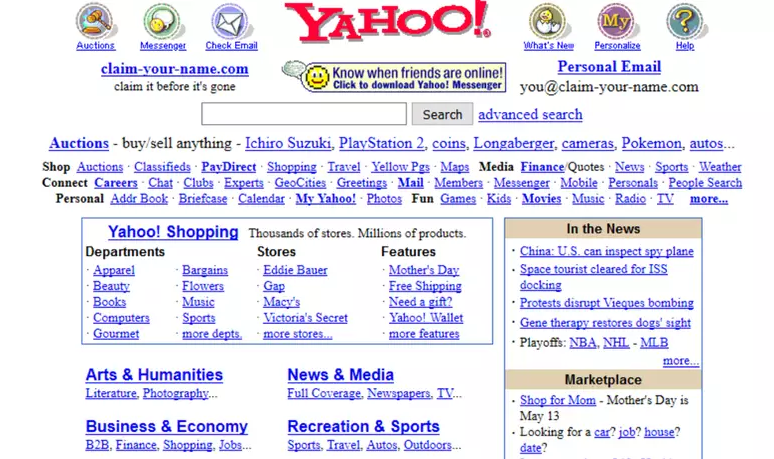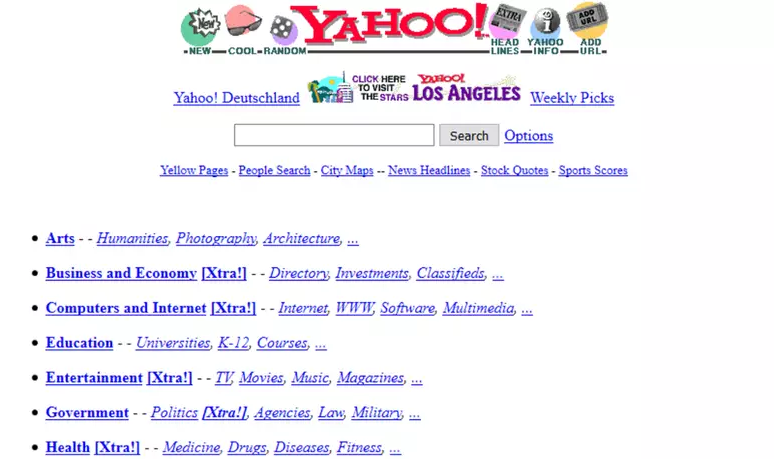 Antigamente os sites eram criados utilizando somente a linguagem HTML. Vejamos a evolução do famoso site Yahoo.
