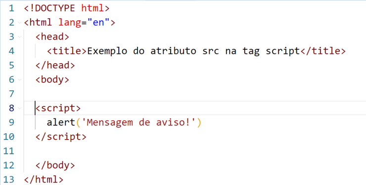 Podemos inserir o código Javascript diretamente no documento HTML utilizando a tag <script>