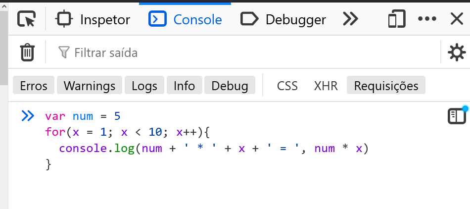 Outra maneira rápida para executar códigos javascript é através do “console” do navegador de internet. Abrimos o console apertando a tecla F12 ou clicando com o botão direito do mouse e depois em “inspecionar”