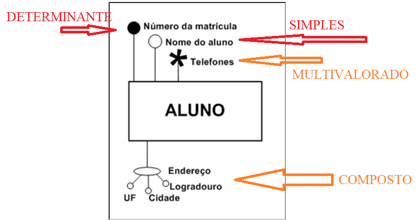 O seu conteúdo é formado por vários itens menores. Exemplo: Endereço. Seu conteúdo poderá ser dividido em vários outros atributos, como: Rua, Número, Complemento, Bairro, Cep e Cidade. Este tipo de atributo é chamado de atributo composto. Veremos mais de sua aplicação no post sobre normalização de dados.