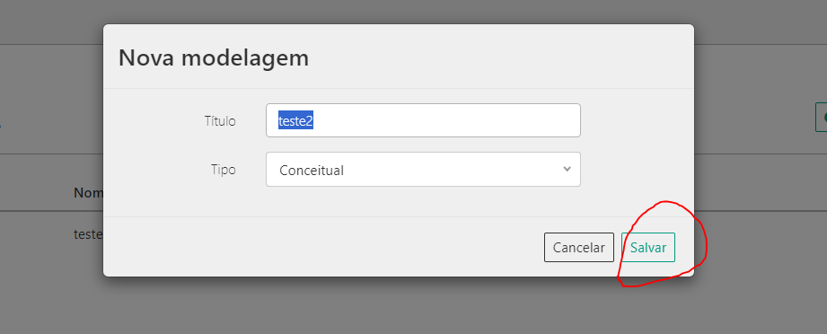 digite um nome para a modelagem e selecione o tipo CONCEITUAL