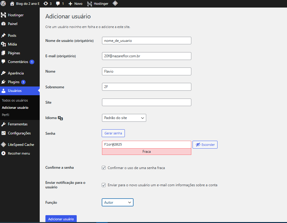 Vamos criar um usuário. Acesse o painel administrativo do nosso blog no link abaixo: