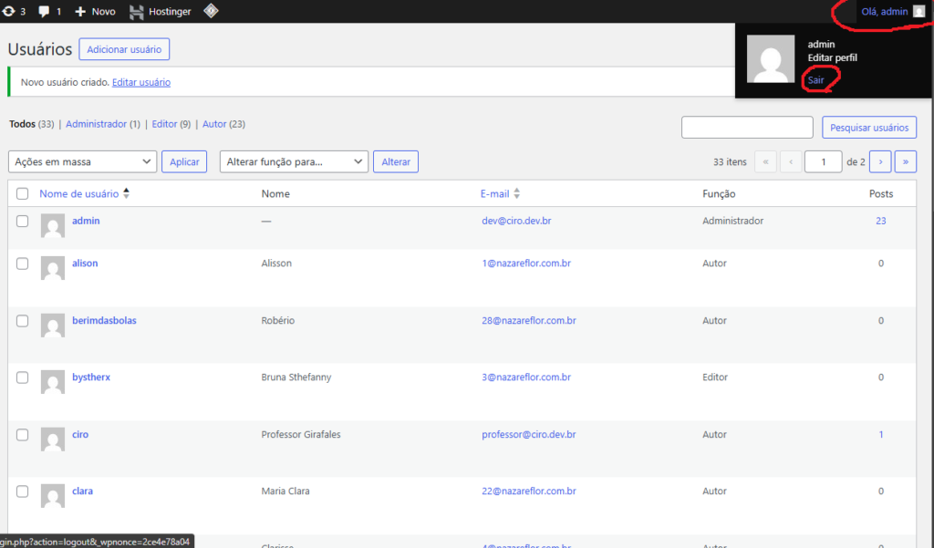2. Após criar seu usuário, realize o logout entre no blog com seu usuário recém criado.