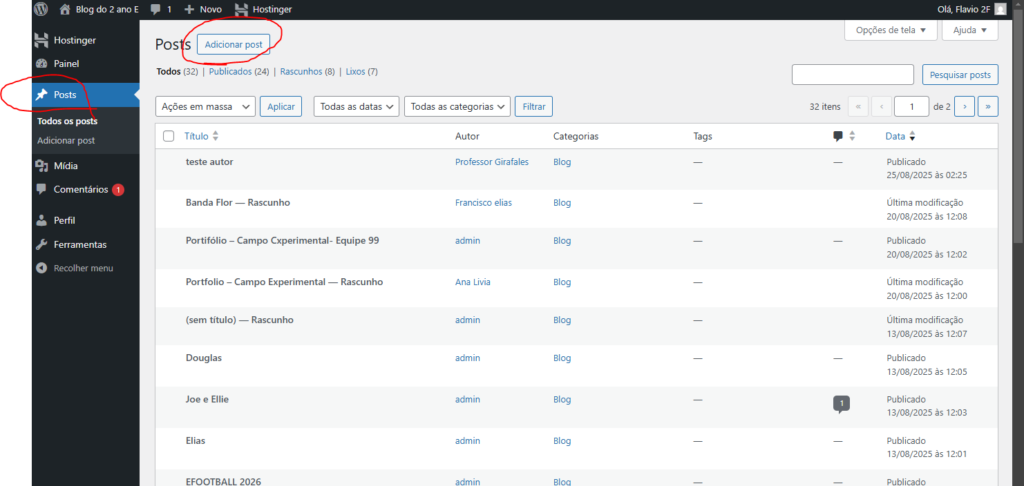 Flavio: Esse é o nome que vai aparecer nas postagens