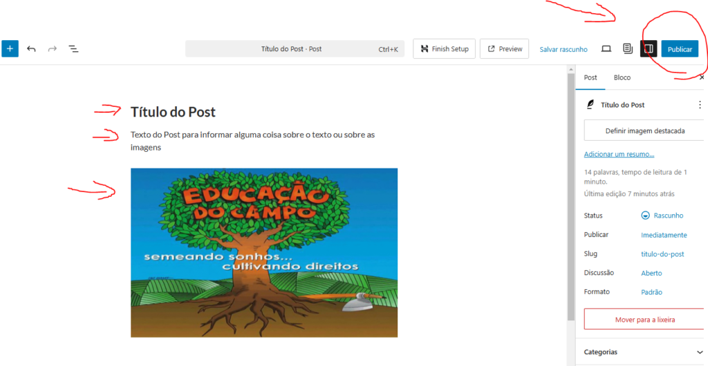 Após redefinir a senha, clique crie uma nova postagem no menu POSTS
