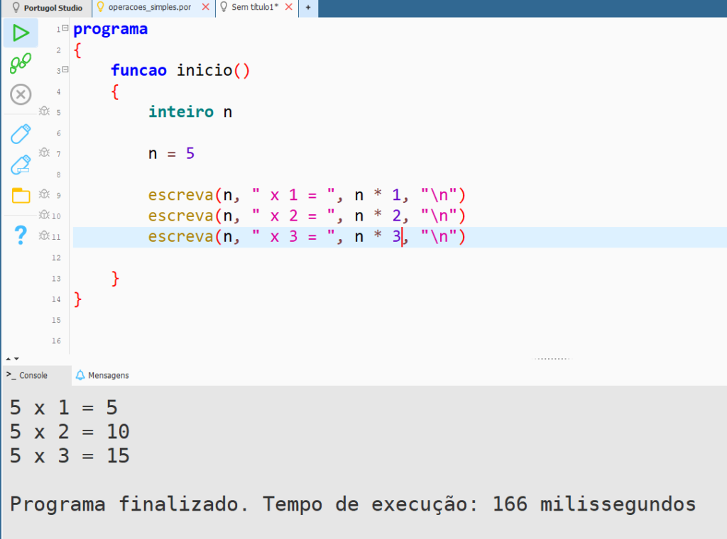 São os símbolos que usamos para fazer contas. No Portugol, usamos: