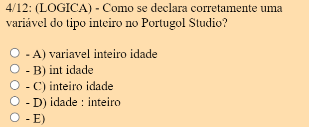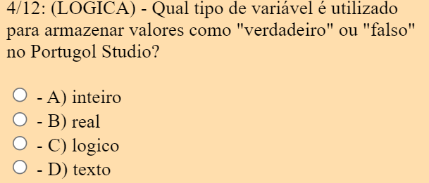 - Quais os cinco tipos de variáveis da linguagem Portugol?