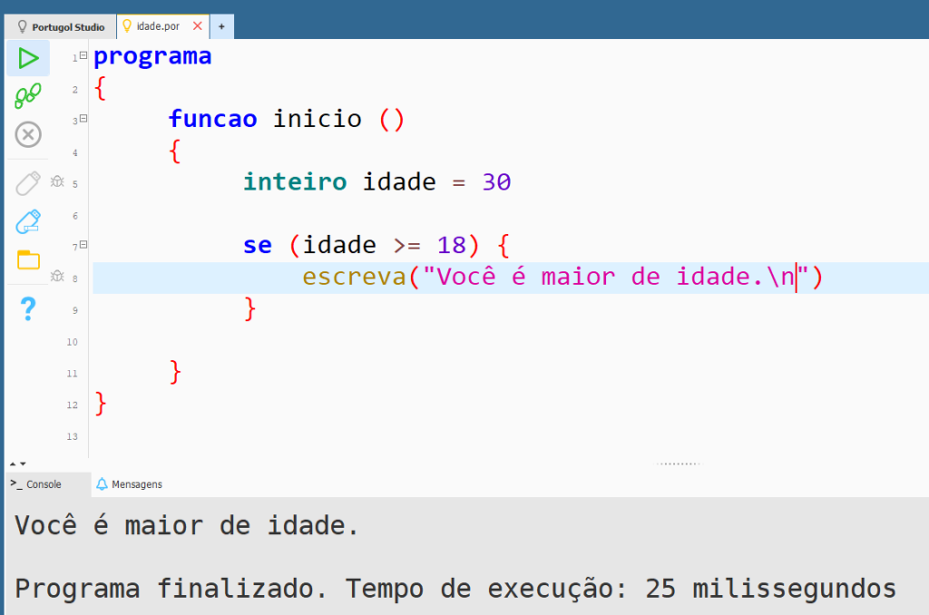 A estrutura se é a forma mais simples de estrutura condicional. Ela executa um bloco de código somente se uma condição for verdadeira.