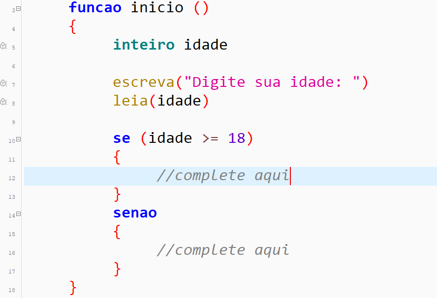 • Se a idade for maior ou igual a 18, escreva “Você é maior de idade”.