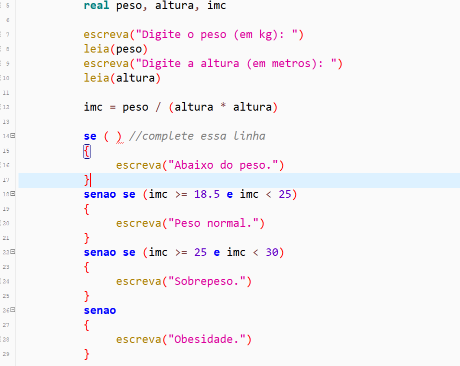 Exemplo: (COPIAR QUESTÃO E LINHAS 5-18 do código)