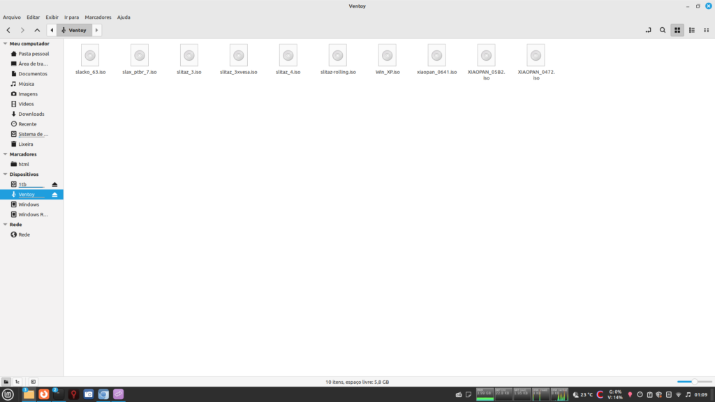 Após adicionar as ISOs dentro do pendrive, ele estará pronto para ser inicializado em algum computador com um dos sistemas operacionais instalados.