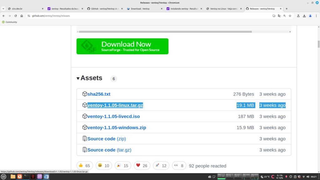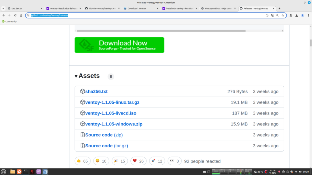 Para instalar o ventoy acesse o site: https://github.com/ventoy/Ventoy/releases