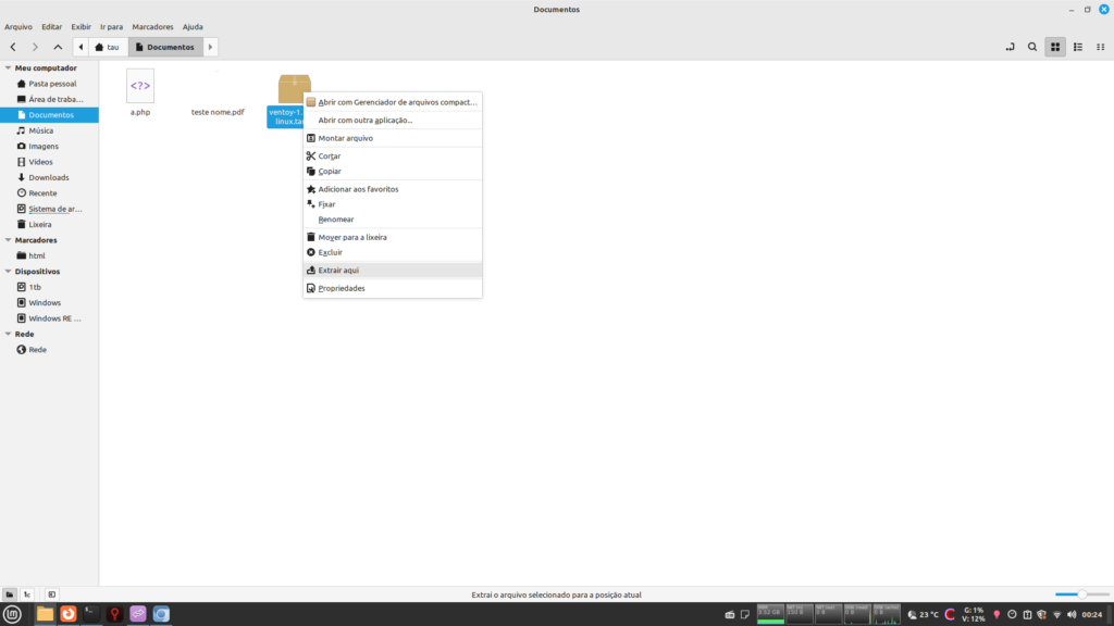 Descompacte o arquivo baixado