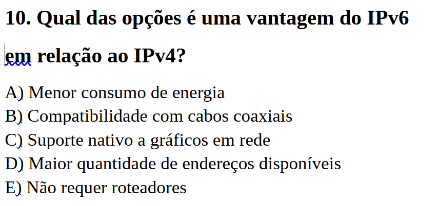 2001:0db8:85a3:0000:0000:8a2e:0370:7334 - Criado para resolver a limitação de endereços do IPv4